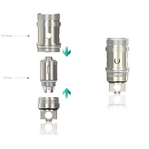 Using an EC sleeve to encase a GS coil, the encased GS coil will then become compatible with iJust series atomizers, MELO, MELO 2, MELO III, and MELO 3 Nano as well for mouth to lung inhaling.